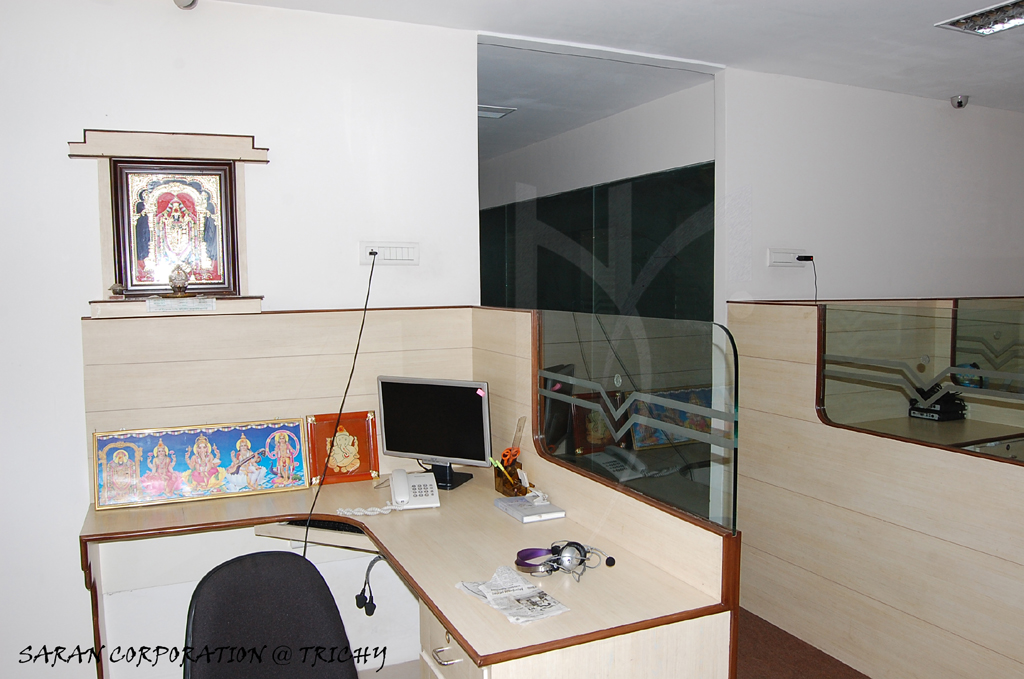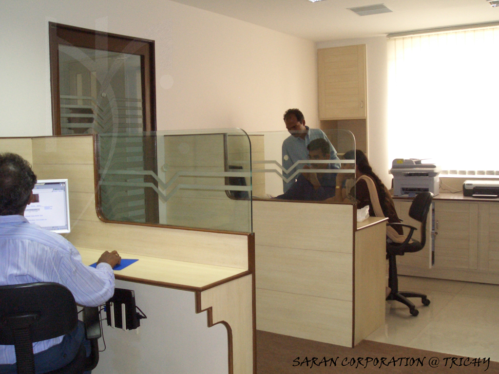 In the business part of the city, we made this office for a Japan based company. Glass was used in immense. A massive 18’ long toughened glass with the globe worked on it marking the number of branches they have around the globe, makes the hallway more interesting, connecting the serious work space to the elegant business space.